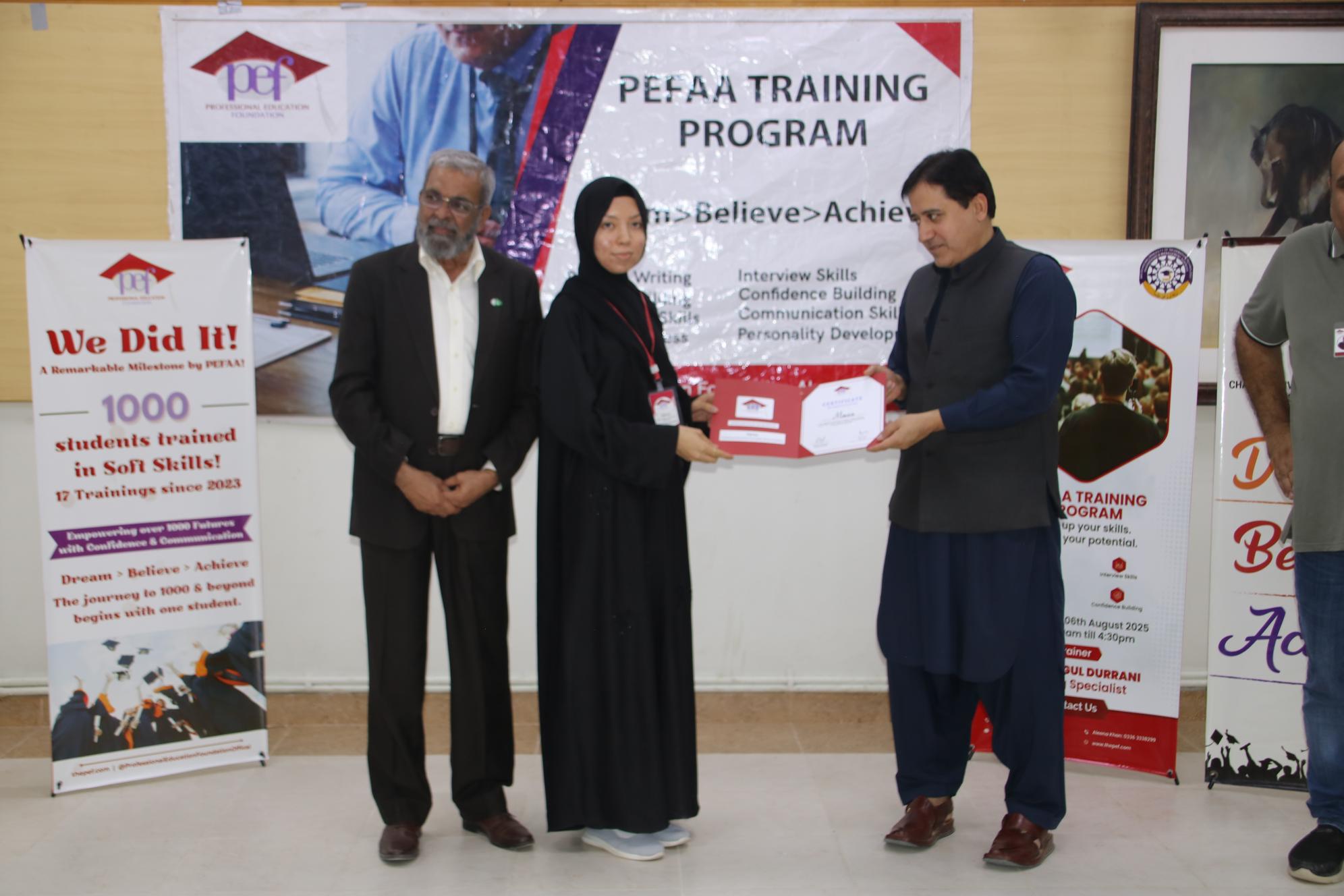 At Baluchistan University of Information Technology, Engineering and Management Sciences BUITEMS QUETTA 60+ PEF scholars and alumni participated in a powerful PEFAA-led training by Zunaira Gul Durrani, with certificates distributed by COO PEF, Jawid Faruqui.
